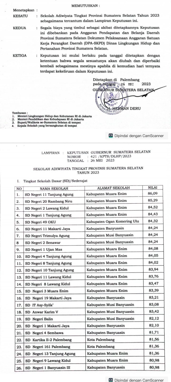 Untuk Lomba Sekolah Adiwiyata Tingkat Propinsi SDN 4 SEMBAWA berhasil menjadi Sekolah Adiwiyata Tingkat Provinsi Sumatera Selatan Tahun 2023 Terima kasih Kepada :